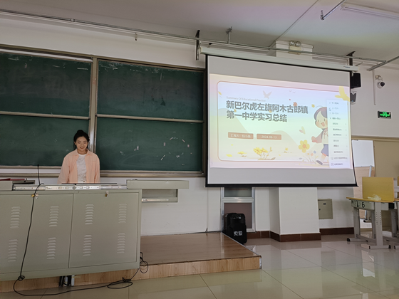 本次实习历时两个多月,共有87名学生参与,他们分别在呼伦贝尔市新巴尔虎右旗、左旗、陈巴尔虎旗、鄂温克自治旗的中小学以及兴安盟科右前旗和科右中旗中学等11个实习基地进行了专业实践。各实习学校的代表们借助精心准备的视频和照片等多种媒介,回顾并总结了他们的实习生涯。他们不仅深刻反思了听课与讲课的教学实践,还分享了作为班主任在日常管理工作中的真实体验。此外,他们还细致地讲述了与学生和同事相处的点滴感悟,以及参与各类校园活动所获得的宝贵心得。汇报内容不仅丰富多元,而且展现了实习生们在教育实践中所取得的成长与收获。同学们纷纷表示,通过两个多月的实习,他们学会了如何组织班级活动,并能独立开展教学活动,收获颇丰。