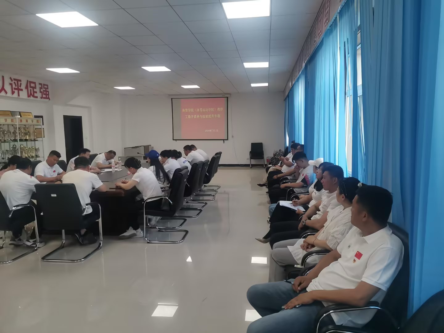 为深入学习习近平总书记关于数字经济发展的系列重要指示精神,全面贯彻落实国家教育信息化建设宏观规划,扎实推进国家教育数字化战略行动,完善教育信息化标准体系,全面提高bat365官网教职工的信息化素养与教育信息化能力,推动bat365官网教育高质量发展,根据《“十四五”数字经济发展规划》《教师数字素养》等政策文件要求。体育学院(冰雪运动学院)于7月1日上午,在东山田径场二楼会议室组织全体教职工参加数字素养与技能提升专题网络培训。