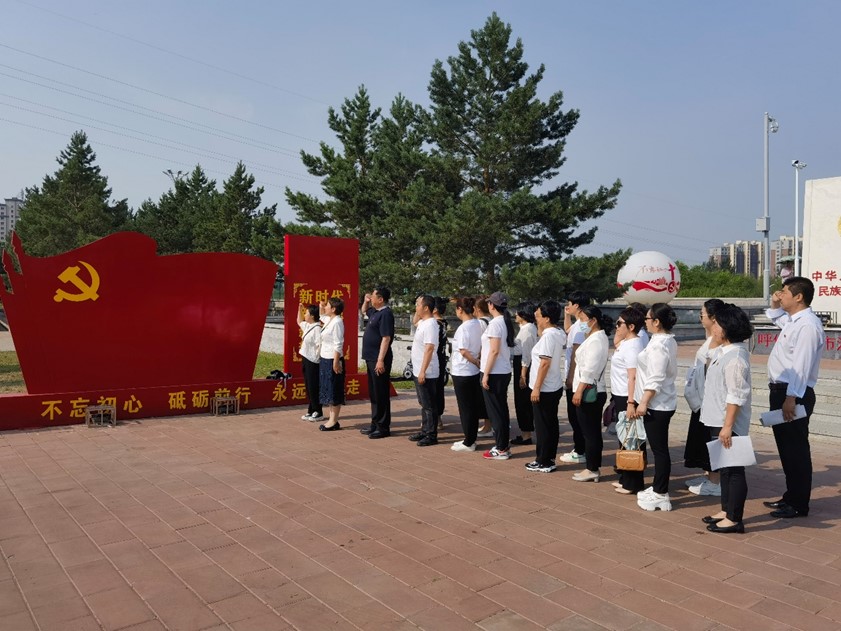 为庆祝中国共产党成立103周年,重温党的光辉历程,弘扬伟大建党精神,7月3日,外国语学院党总支在呼伦贝尔市法治文化广场开展了庆七一主题党日。