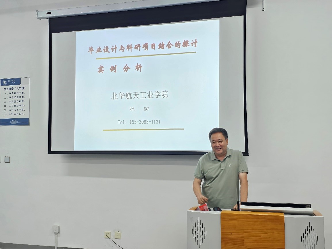 会上,杜韧结合自身科研经历,主要从构建毕业设计实践教学体系、大学生创新能力培养模式、毕业设计与科研项目相结合的探讨等三个方面进行经验交流,并详细地介绍了具体的企业合作案例和经验。