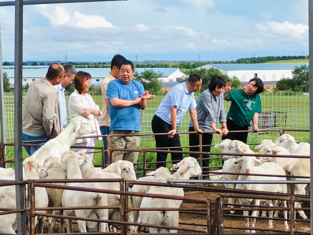 首先,一行人参观了内蒙古澳群牧业。企业负责人详细介绍了企业情况,并带领大家参观了核心育种场、高效肉羊良种繁育体系、产房、待配圈以及肉羊生产性能测定中心等关键环节。双方就内蒙古澳群肉羊的“放牧+舍饲”及“全舍饲”养殖模式的成熟性、复制推广的可能性、提质增效的策略、政产学研合作的重要性以及联农带农的实践路径进行了深入探讨。