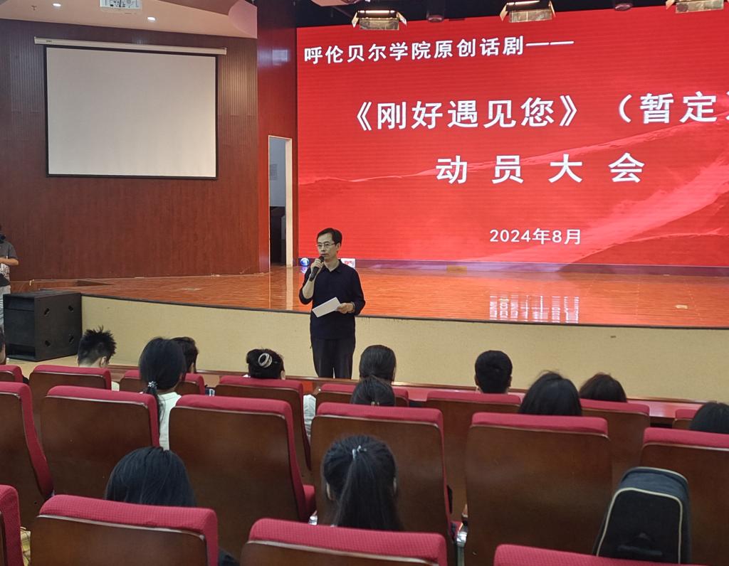 会上,学院党总支书记核心首先进行了动员讲话。他指出,本部话剧的成功申报得到了自治区教育厅、呼伦贝尔市和学校党委的大力支持及帮助,是对习近平总书记对内蒙古及教育工作的重要指示批示精神的坚决贯彻落实,是彰显北疆特色、呼院特色的扛鼎之作,校领导高度重视并多次过问话剧进展。因此,他强调并要求话剧主创团队及所有参演人员务必要有强烈的政治意识、大局意识、责任意识,务必要用心、用智、用情、用功、用力去完成话剧排演任务,为观众呈现一场精彩的艺术盛宴。