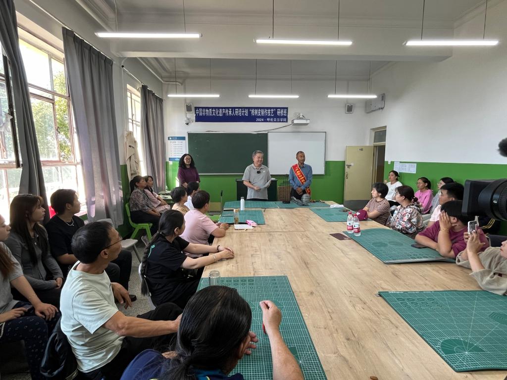 9月7日下午,美术学院非遗文创艺术社团的20余名学生参加了由学校承办的“中国非物质文化遗产传承人研修培训计划”专题讲座及铁丝编织灯笼技艺的非遗实践制作活动。