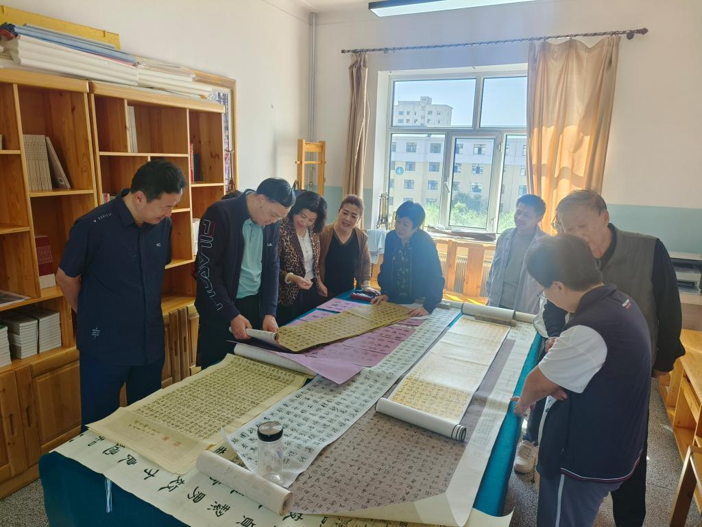 为全面展示bat365官网新时代高素质专业化教师队伍建设的突出成就和广大教师立德树人、自信自强的精神风貌,9月8日上午,美术学院与书法艺术研究会相关教师在尚行楼505室开展了书法艺术交流活动。