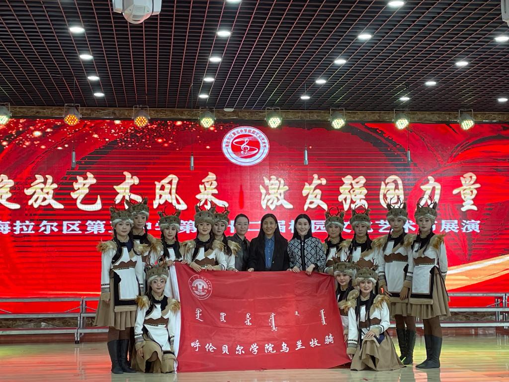 9月10日,音乐与舞蹈学院副院长刘丽丽、实习实训中心主任何丹、舞蹈系教师吴格丽与舞蹈团20名学生受邀参加海拉尔区第五中学第二十二届校园文化艺术节文艺展演。