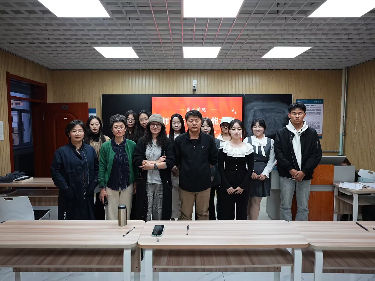为检验美术师范教育的成果,提升美术师范生的教学技能和专业素养,增强职业认同感,促进美术教育专业的发展,9月19日,在尚行楼510活动室,美术学院举办了第二届师范生技能大赛。学院经各班老师推荐共有11名学生参赛。学院绘画系主任张晶、国画与书法系主任张明星,雕塑与理论教研室主任徐殿斌、美育教研室主任桂丽、学院教师金敏和刘永强参加了活动。
