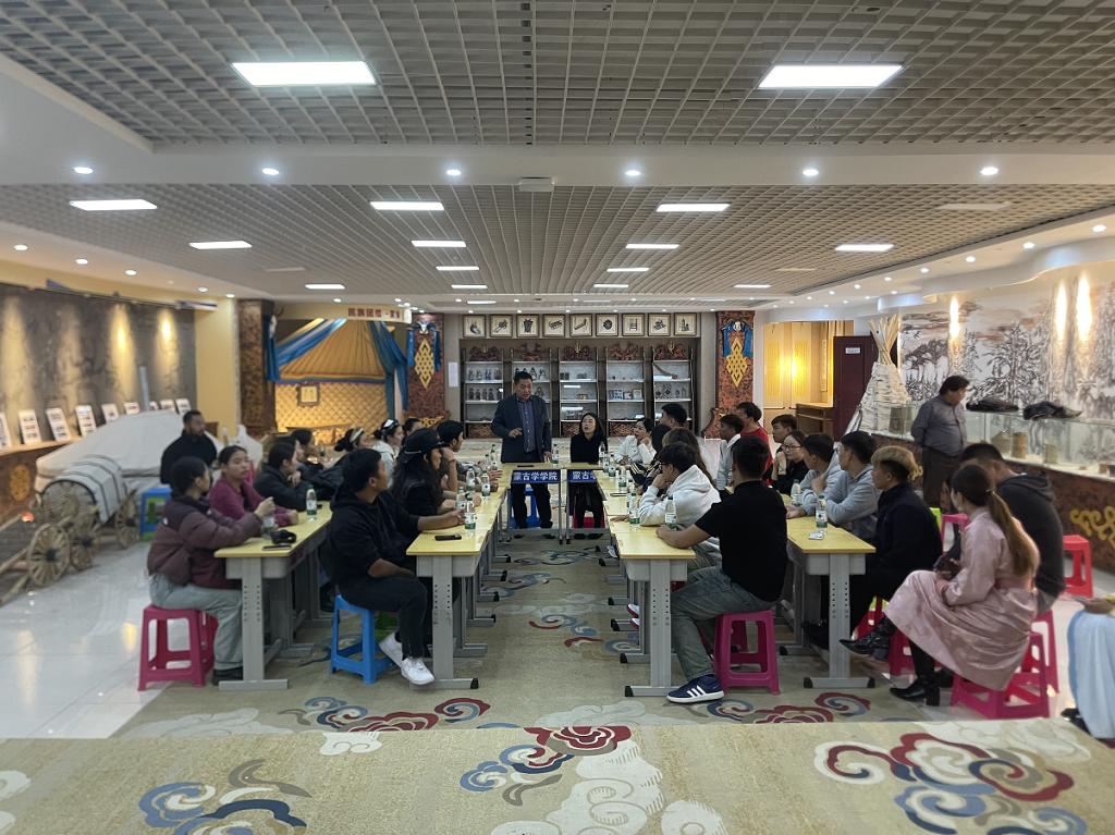 座谈会上,两国学生通过才艺表演进行互动。双方学生表演了民族传统歌舞、呼麦等,现场气氛热烈,欢声笑语不断。接着,蒙古国立艺术学校学生分享了本国独特的文化传统、风俗习惯和自然风光;蒙古学学院学生介绍了中国悠久的历史、灿烂的文化和丰富的地域特色,引起了大家的浓厚兴趣。随后,进行了分组交流,学生们共同讨论学习方法、生活趣事和未来梦想,并交换了联系方式,希望能继续保持联系,共同进步。最后,大家参观了民俗馆展出的非物质文化遗产和教学环境。