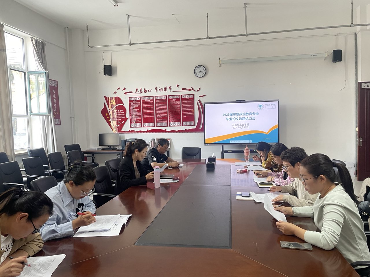 为切实提高本科生毕业论文质量,做好学院2025届思想政治教育专业本科生毕业论文相关工作,9月25日,马克思主义学院召开2025届思想政治教育专业毕业论文选题论证会,组长吴秀芳、副组长明兰及全体论文指导教师参加会议。