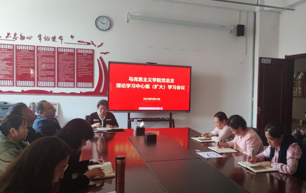为深入学习贯彻习近平总书记在党的二十届三中全会上的重要讲话精神和在全国教育大会上的重要讲话精神,持续强化理论武装,推动理论学习入脑入心,9月25日下午,马克思主义学院党总支在崇文楼B座123会议室召开学院党总支理论学习中心组(扩大)学习会议,学院党总支书记刘凤琴主持会议,学院全体教师参加学习。