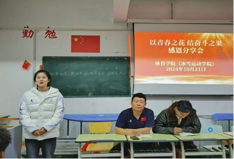 为进一步加强学院学风建设,充分发挥榜样示范和引领作用,激发学生的学习热情,10月21日,体育学院(冰雪运动学院)在山下体育馆二楼多媒体教室开展了“以青春之花 结奋斗之果”感恩教育主题分享会。学生工作处(党委学生工作部、武装部)副处长白松林,体育学院(冰雪运动学院)党总支副书记凌占一,团学办老师,获奖学金、助学金的学院学子们参加了会议,会议由团学办副主任张娜娜主持。