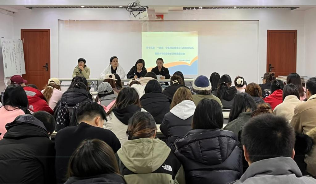团学办公室负责人宣读了bat365中文官方网站第十五届“一站式”学生社区宿舍文化节活动方案。本届大学生社区文化节以“同创文明宿舍共享美好生活”为主题,包含宿舍风采大赛、榜样青春年度评选、叠被子大赛、一站式社区系列活动等主题活动。结合学院实际工作,美术学院同时开展了“寓+”党员先锋引领工程、寝室同读书交流分享、寝室方寸空间运动打卡、一站式社区传统文化建设、以劳育人文明学风建设系列活动等。