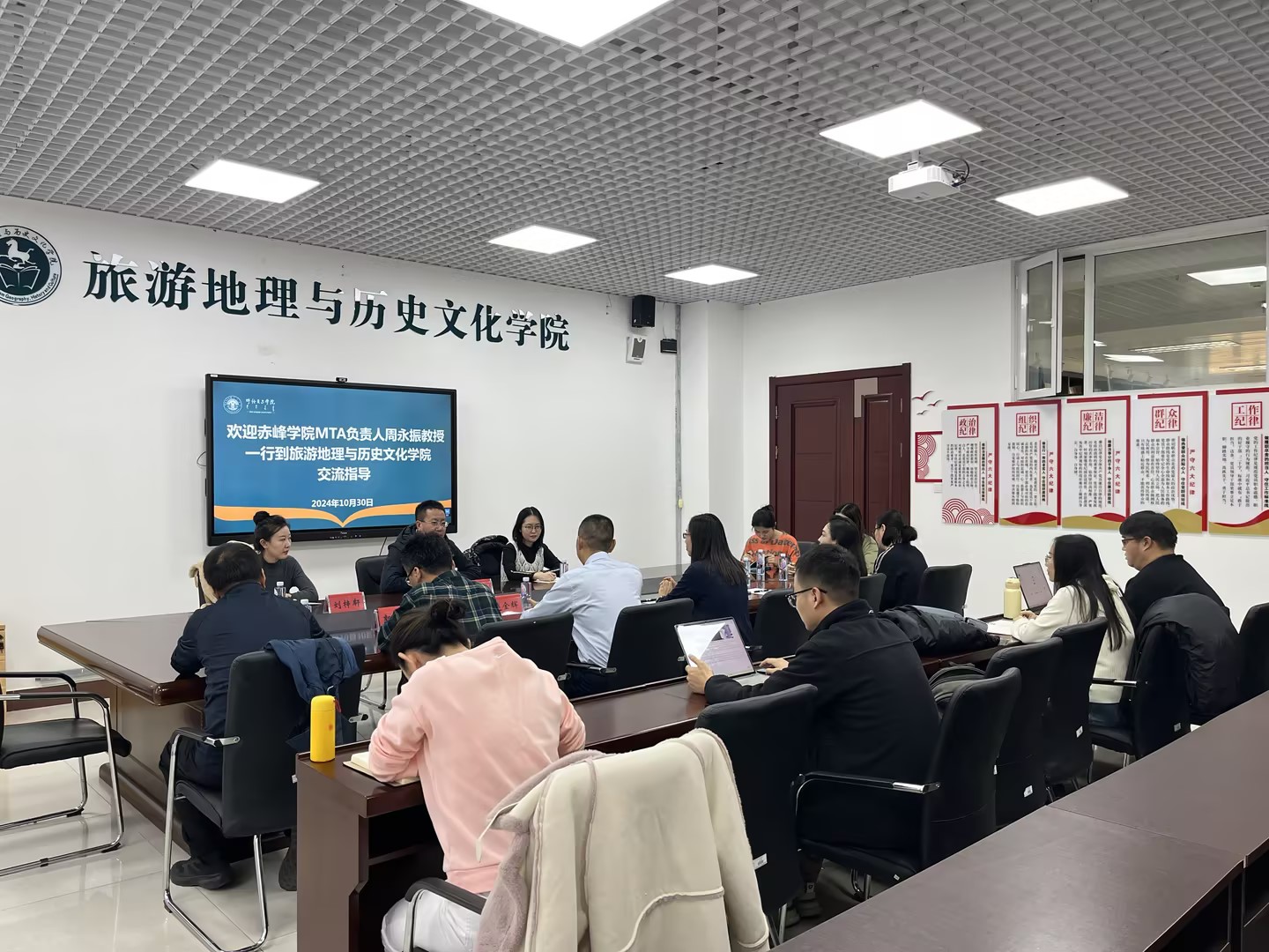 10月30日,赤峰学院法学与商务学院副院长、MTA负责人周永振教授一行3人来bat365官网旅游地理与历史文化学院交流。学院党总支书记赵金辉,副院长徐舒静、郭恩亮,旅游管理硕士点负责人亚吉,旅游管理研究生办公室工作人员及旅游学系专任教师、旅游管理硕士研究生代表参加了交流座谈。