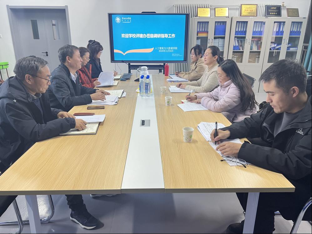 11月6日下午,学校评建办公室主任娜布其一行深入人工智能与大数据学院调研指导本科教育教学审核评估工作。学院院长刘仁山、副院长耿卫江、环节干部、系部负责人、评估工作组成员及教师代表参加会议。
