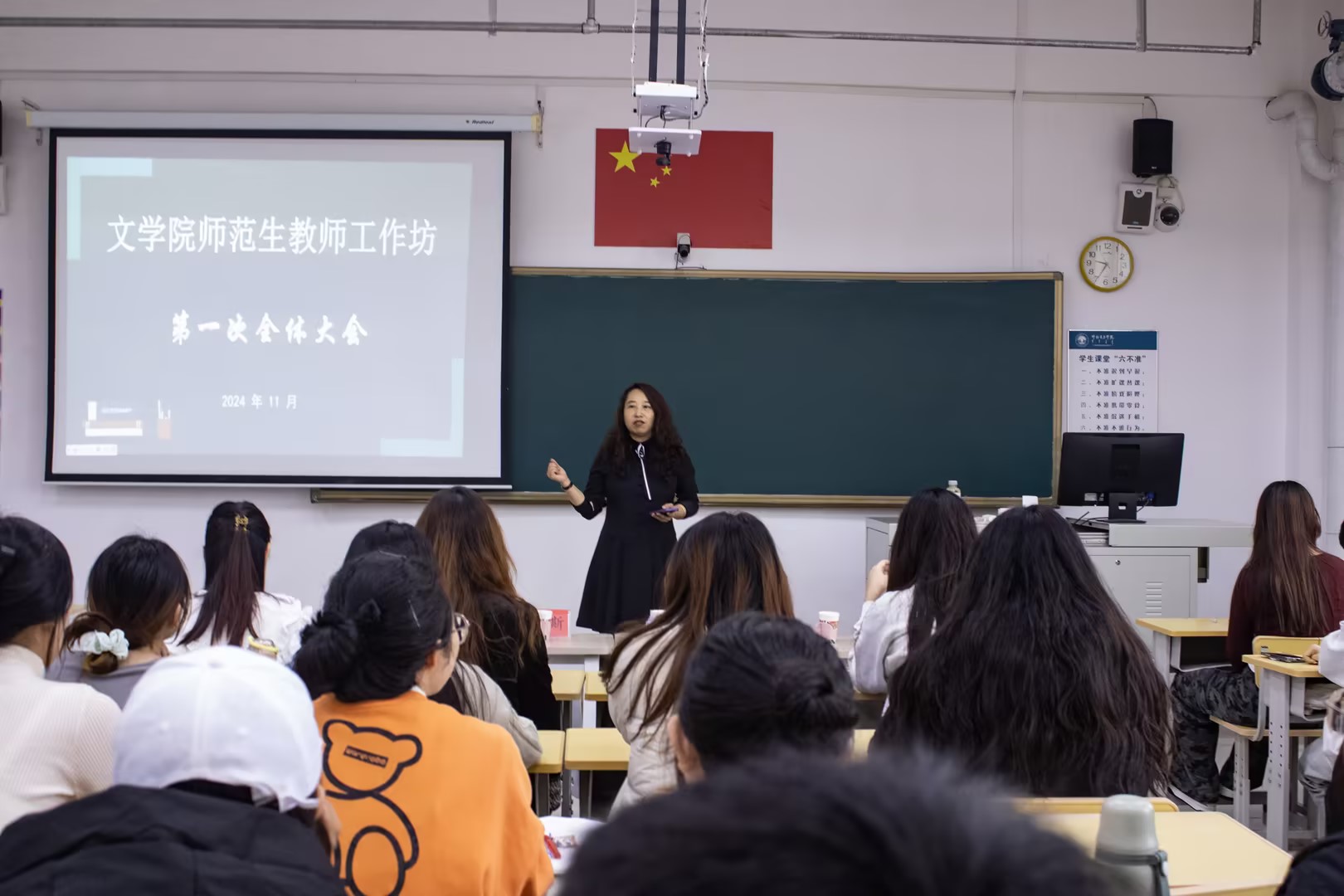 为实现师范生在就业压力情境下“毕业即就业”的愿景,文学院师范生教师工作坊于11月6日在崇文楼B602教室举行了成立大会,并邀请海拉尔区南开路小学娜日斯和吕彩诺两位教师为工作坊成员作专题分享。