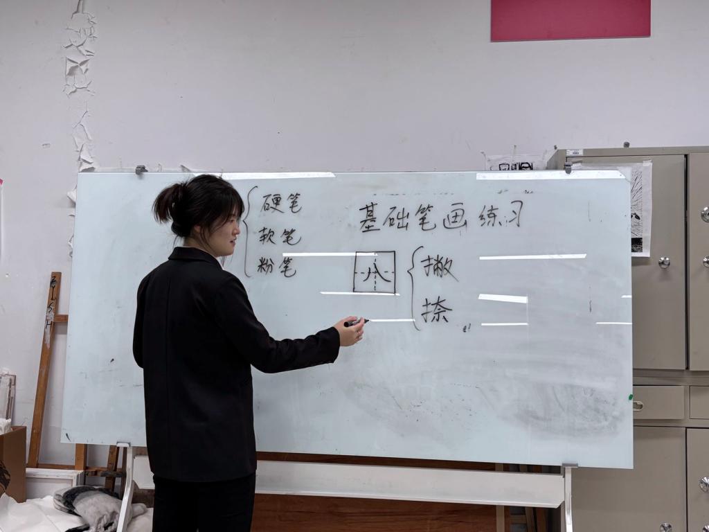 为提升师范生教学技能,弘扬中华优秀传统文化,自今年9月起至11月22日,美术学院品轩书法社团利用晚自习的时间,精心组织2023级、2024级师范生开展三笔字(毛笔字、钢笔字、粉笔字)技能训练活动,并于11月23日至30日,在尚行楼四楼开展“墨香蕴美育,三笔书芳华”美院特色晚自习与师范生三笔字训练成果展。
