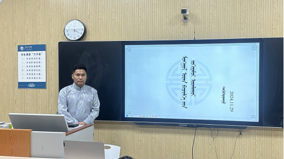 11月29日下午,蒙古学学院在崇文楼B207教室成功举办了青年学者系列讲座活动。本次讲座由学院乌云斯琴、特古斯朝格图两位博士主讲,吸引了教育学院、历史文献研究中心和蒙古学学院的50余名师生前来聆听。讲座由学院中国少数民族语言文学系主任包萨如拉主持。