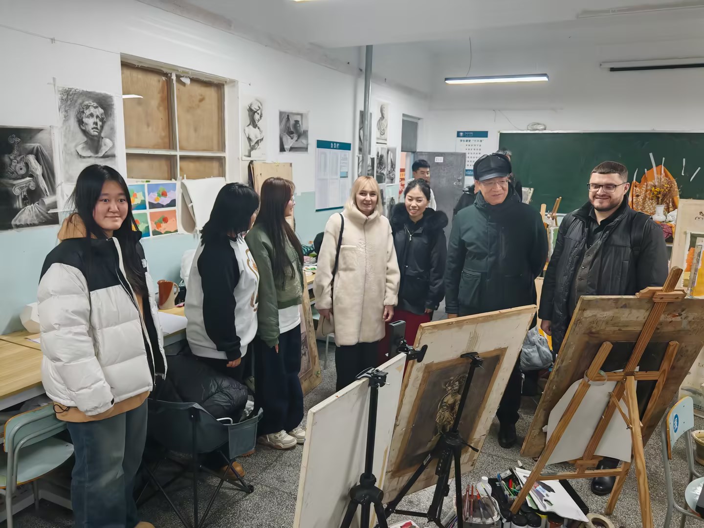 12月5日,俄罗斯西伯利亚国立艺术学院校长弗拉基米尔·谢尔盖耶维奇·卢赞代表团一行参观美术学院,国际教育学院(外事办公室)院长王树恩陪同。