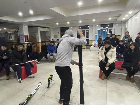 开课前,老师们为同学们详细讲解了滑雪的基本知识,包括雪板的结构与使用方法、滑雪姿势的要点、如何控制速度与方向以及安全注意事项等。