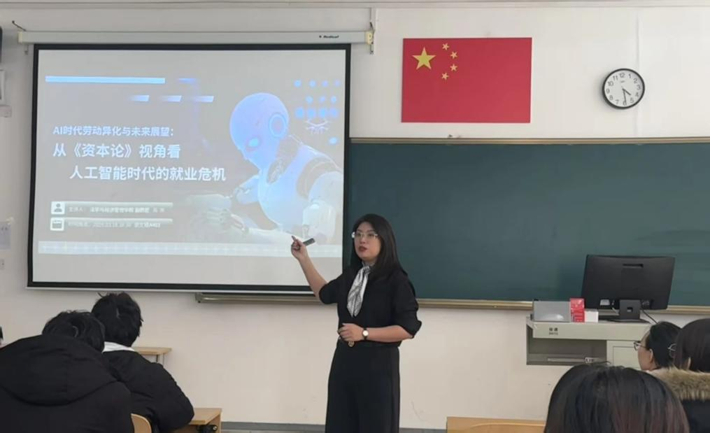 讲座中,高爽从马克思主义政治经济学视角出发,深入分析了人工智能技术对就业市场的多维度影响。她指出,在智能化浪潮下,重复性、规律性的工作岗位面临被替代的风险,劳动者需积极适应技术变革,提升核心竞争力。同时,她呼吁学生增强劳动权益保护意识,学会在就业过程中维护自身合法权益,避免陷入不合理的劳动环境,实现职业健康可持续发展。