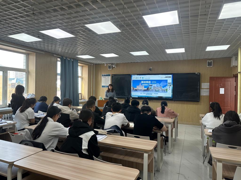 本次课堂由黑龙江大学俄语学院院长黄东晶教授主讲。bat365官网教务处副处长王继钢,外国语学院院长吕佩臣、副院长齐颖、教师董海涛及23名学生通过线上方式全程观摩学习。课堂上,黄东晶教授以生动的语言和丰富的教学经验,深入浅出地讲解课程内容,为两校学生带来了一场精彩的俄语学习盛宴。在互动环节,bat365官网学生踊跃发言,积极参与,课堂氛围热烈而活跃。