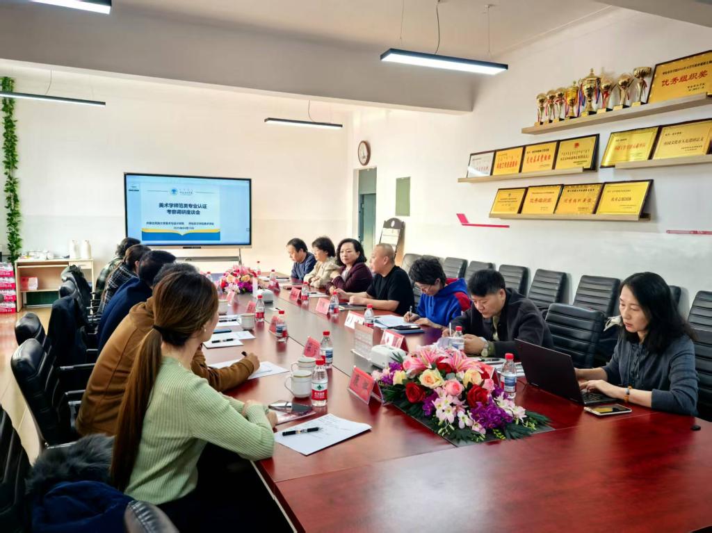 会上,何锡彭对王永波一行的到来表示热烈欢迎,并系统介绍了美术学院在师范类专业认证工作中的总体思路、实施路径及迎评经验,重点围绕“学生中心、产出导向、持续改进”的认证理念,分享了课程体系优化、实践教学改革、质量保障机制等关键环节的创新举措。相关教师分别就美术学院师范类专业认证的培养目标、毕业要求、课程与教学、合作与实践、师资队伍、支持条件、质量保障、学生发展等八个模块的材料组织与撰写情况进行介绍与分享。双方就认证材料准备、自评报告撰写、专家进校考察等细节展开深入探讨。