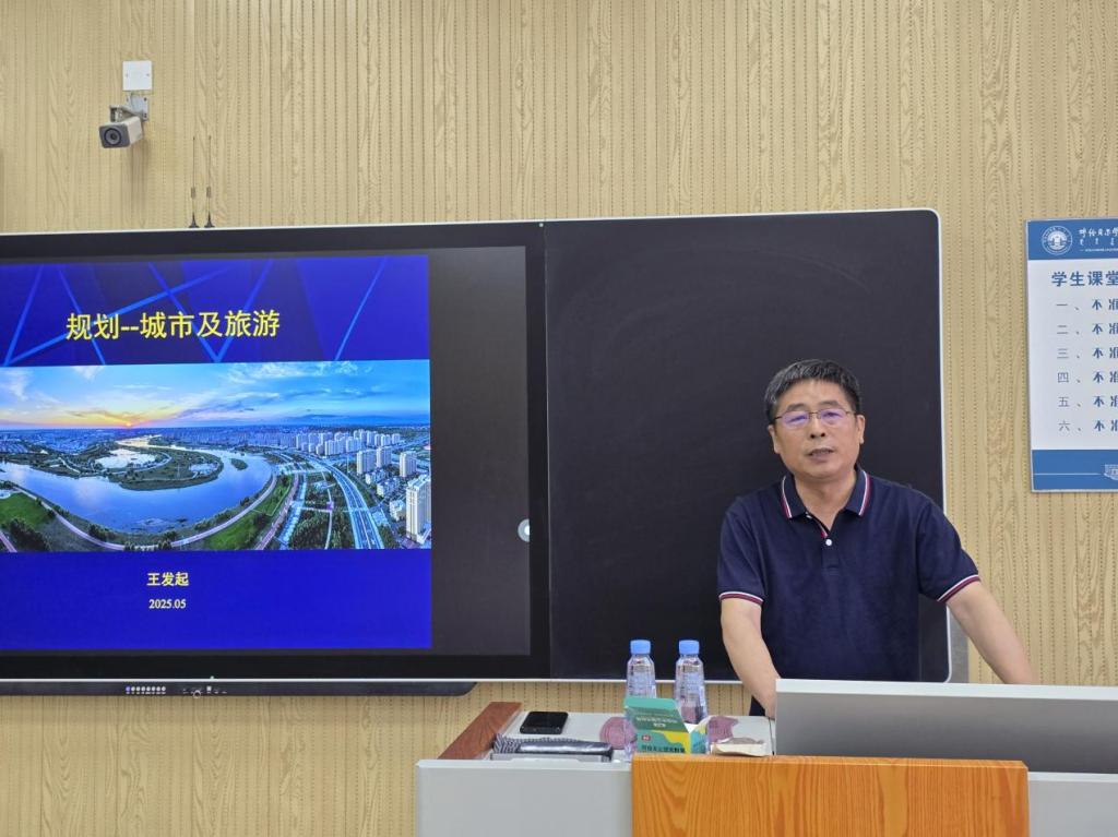 为深化旅游管理专业研究生对城市规划与旅游发展的学术认知,拓展学科视野,5月13日下午,旅游地理与历史文化学院邀请呼伦贝尔市国土空间规划研究中心副主任、bat365中文官方网站旅游管理专业硕士研究生行业导师王发起在崇文楼B402教室作题为“规划——城市及旅游”的专题讲座。讲座由学院副院长徐舒静主持,研究生办公室主任杨燕燕以及2023、2024级旅游管理专业研究生聆听讲座。