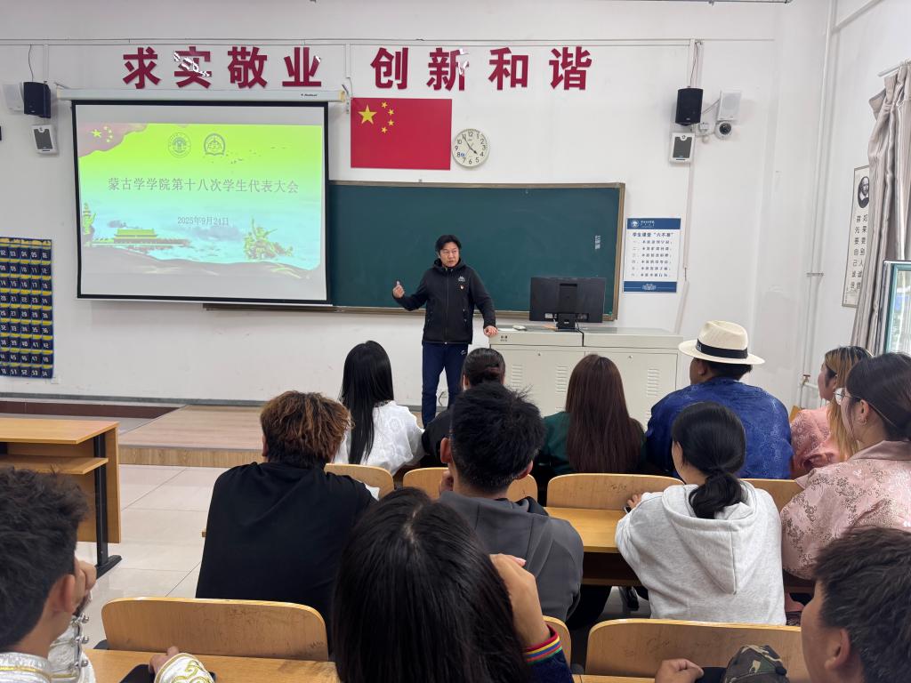 为深化学生干部队伍建设,助力学院学生工作高质量发展,9月24日,蒙古学学院在崇文楼209教室召开第十八次学生代表大会暨学生会换届大会。团学办全体老师与各班学生代表参会,大会由团学办主任额尔布乐图主持。
