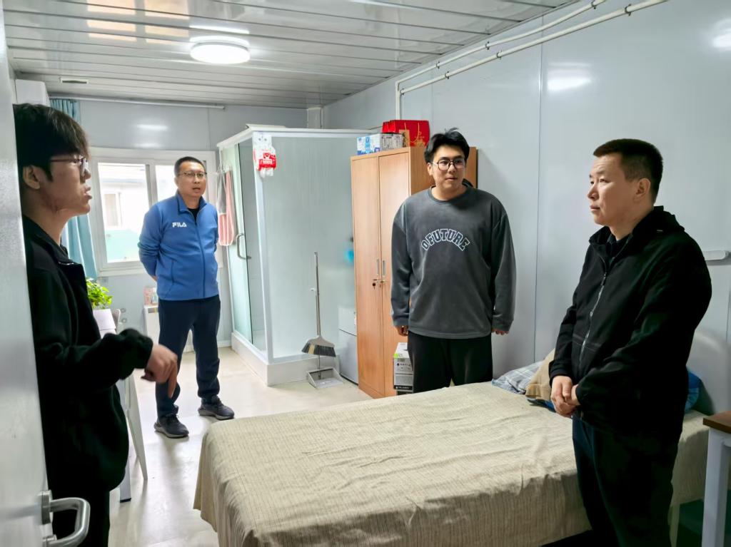 吴淘锁一行首先深入实训教学场地,查看了实训项目的开展情况,并与实训基地企业老师进行了深入交流,详细了解理论知识与实践操作相结合的教学成效。随后,吴淘锁一行走进学生宿舍与食堂,细致查看住宿环境与膳食条件,关切询问学生是否适应异地实训生活,有无实际困难需要学院协调解决。