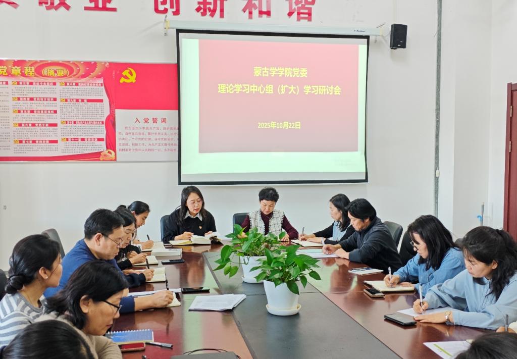 为深入贯彻落实新时代党的创新理论,推动学院高质量发展与教育强国建设深度融合,10月22日下午,蒙古学学院党委召开理论学习中心组(扩大)学习研讨会,专题学习《习近平谈治国理政》第五卷。学习会由学院党委书记格根塔娜主持,全体教职工参会。