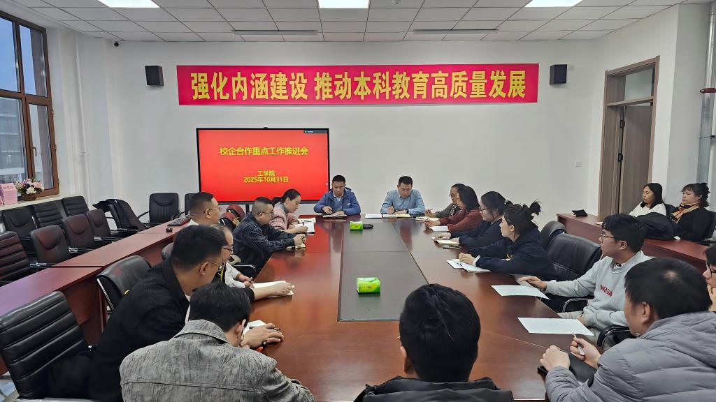 10月31日下午,工学院在产教融合楼北楼313会议室召开校企合作专业重点工作推进会。各校企合作专业企业方负责人、任课教师及相关系部主任参加会议,会议由学院副院长吴淘锁主持。