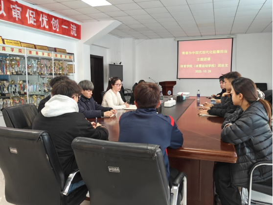 10月29日,体育学院(冰雪运动学院)团总支举办“青春为中国式现代化挺膺担当”主题团课。学院团总支书记卜祥云主讲,团总支委员及15名团支部书记齐聚会场,在思想碰撞与实践中凝聚青春力量,明确青年的时代担当。
