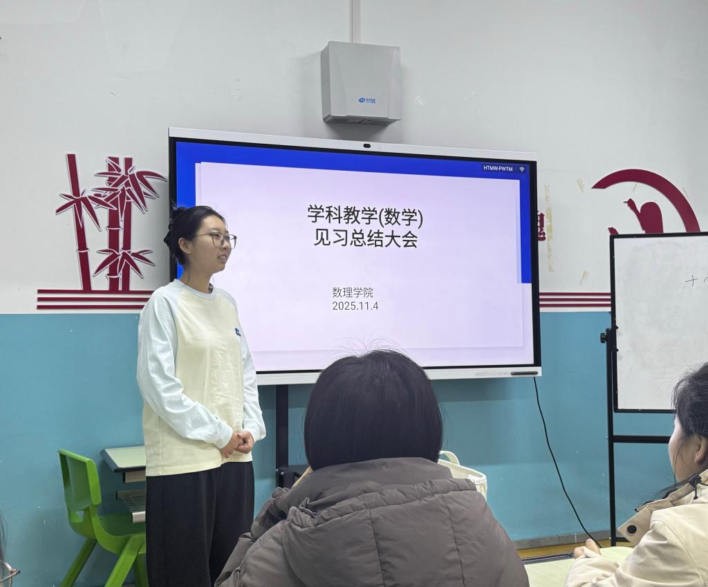 见习结束后,11月4日,学院在笃学楼305教室组织召开了见习总结会议。会上,同学们踊跃发言,分享见习感悟,气氛热烈。大家纷纷表示,此前在课堂上学到的教学理论,在见习过程中得到了具象化呈现。不少同学提到,中学老师用生活实例化解数学公式的抽象性,用趣味提问调动课堂氛围,让他们对“因材施教”有了更真切的理解,