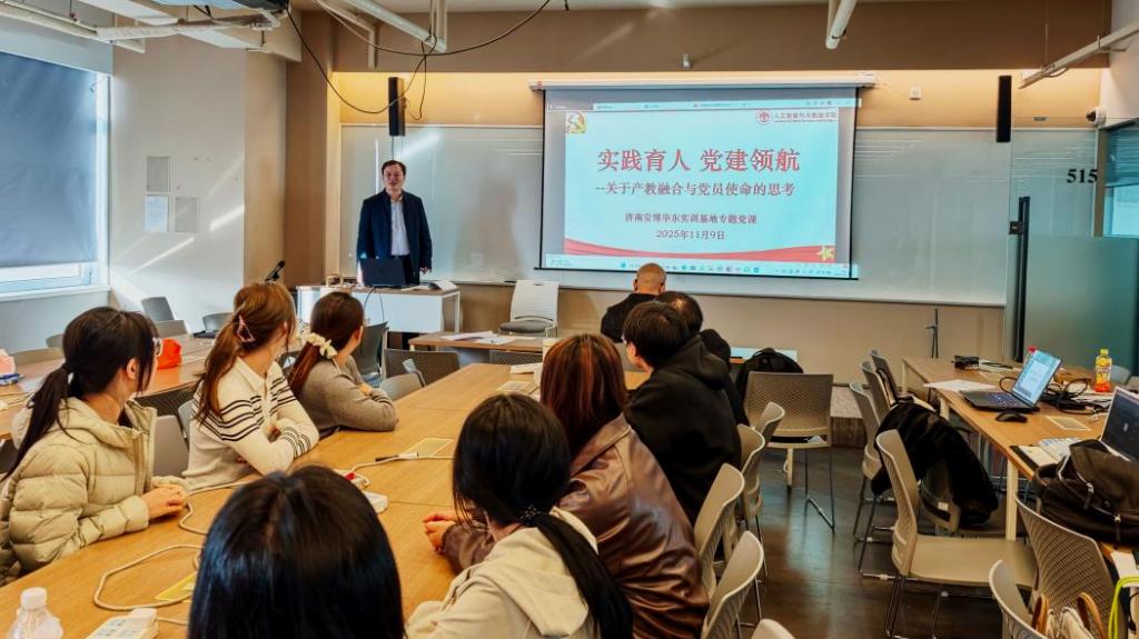 为深化产教融合育人成效,11月9日,人工智能与大数据学院院长刘仁山及相关教师赴安博济南实训基地,检查2022级数字媒体技术专业学生集中实习情况,组织毕业设计答辩并讲授专题党课。