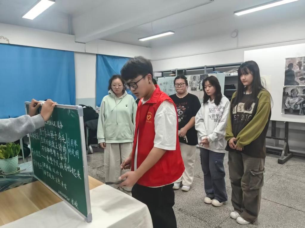 训练期间,品轩书法社团骨干成员担任助教,围绕粉笔字板书布局、笔画规范、结构比例等核心要点进行系统讲授。针对同学们普遍存在的笔顺混乱、间架松散、力度不均等问题,助教们采取“一对一指导+小组互评+范字临摹”多维教学模式,循序渐进地帮助学生夯实基础、突破瓶颈。从最初生涩的笔画练习,到后期工整流畅的完整作品呈现,学生们在一笔一画的锤炼中,不仅提升了书写的实用性与美观度,更深刻体悟到汉字所承载的审美意蕴与文化精神。