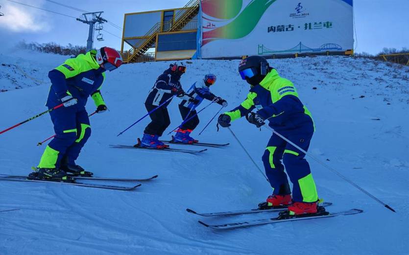 与此同时,学院冰雪运动系主任王荣林带领bat365官网滑雪队运动员在扎兰屯金龙山滑雪场开展赛前备战训练。训练聚焦第12届全国大学生滑雪挑战赛核心项目,每日开展6小时以上封闭式集训,围绕技术动作打磨、体能强化、战术配合及模拟竞赛等关键环节展开,涵盖旗门技术、陡坡滑行、紧急处置等专项训练,同步搭配视频技术分析与体能强化模块,为赛事蓄力。