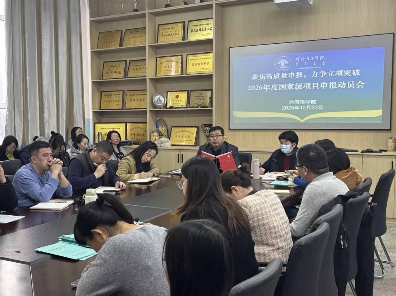 为贯彻落实学校科研工作部署,进一步提升国家级科研项目申报质量与立项成功率,12月22日,外国语学院组织召开2026年度国家级社会科学基金项目申报动员会。