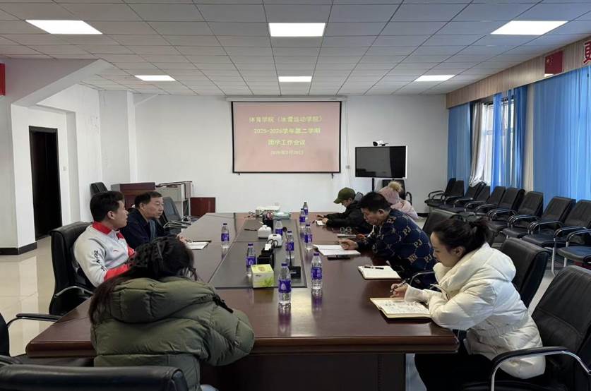2月28日,体育学院(冰雪运动学院)于东山体育场田径馆二楼会议室召开新学期团学工作部署会。学院党委书记胡日查毕力格、党委副书记凌占一、团学办主任卜祥云及全体专兼职辅导员参会。