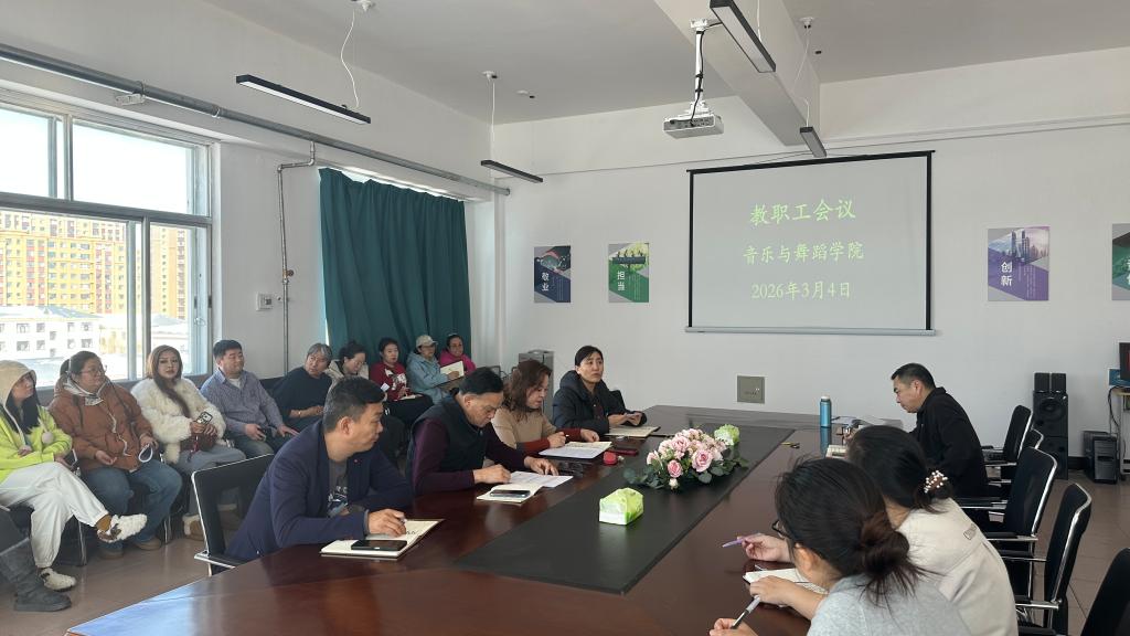 为进一步统一思想、明确任务、压实责任,确保新学期各项工作平稳有序推进,3月4日,音乐与舞蹈学院在艺术楼613会议室召开期初全体教职工大会。学院领导班子成员和全体教职工参会,会议由学院党委书记包德主持。