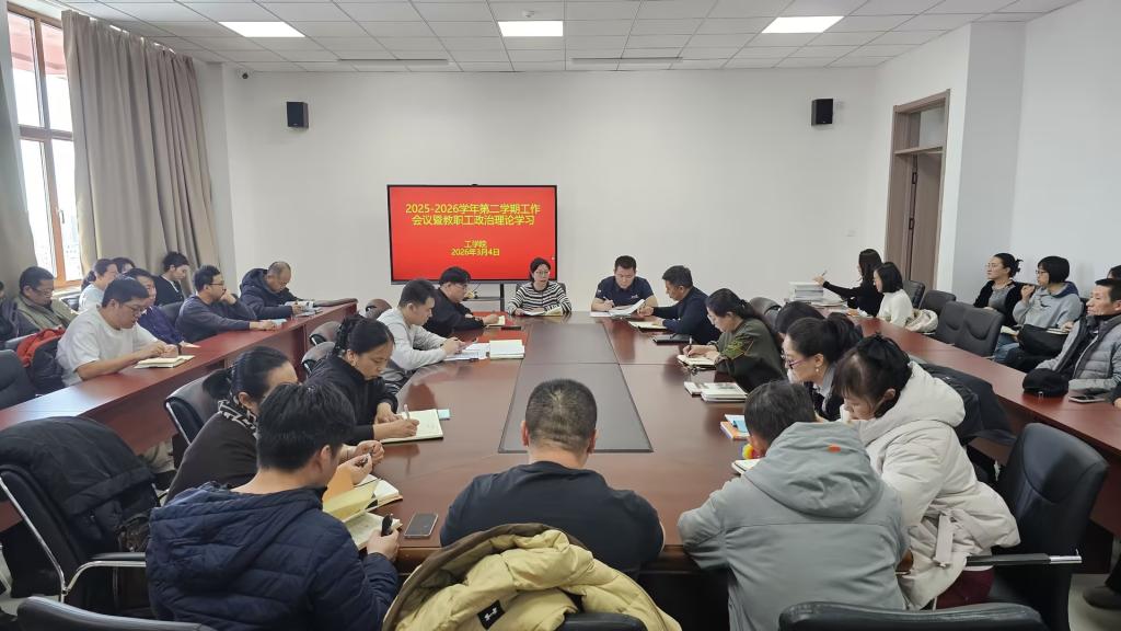 新学期,新希望,新征程。3月4日下午,工学院在产教融合楼310会议室,组织开展了新学期工作会议并组织教职工开展政治理论学习,全体教师参加了会议。
