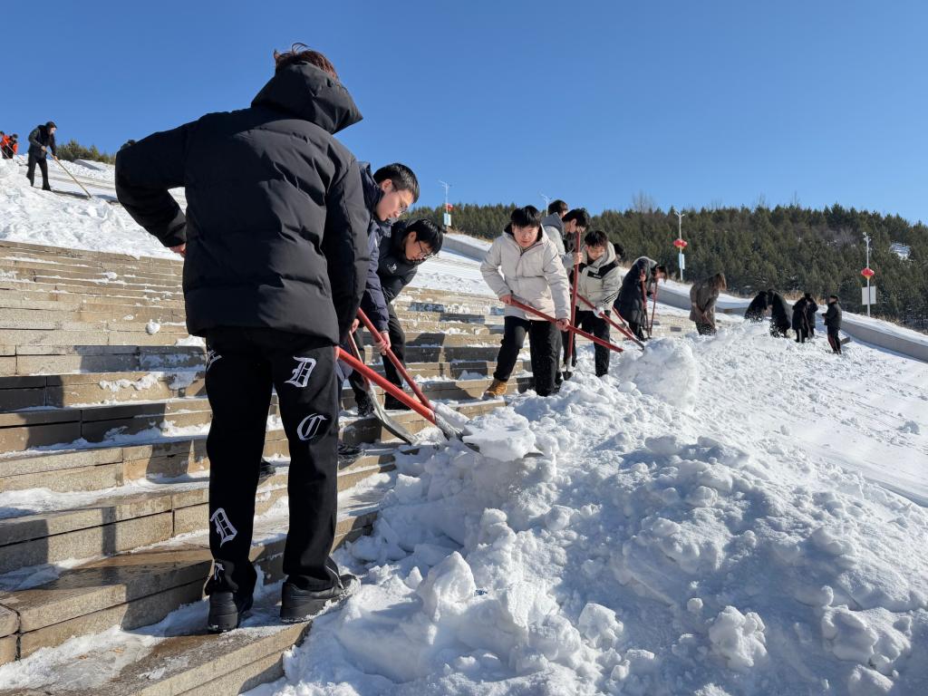 师生们的身影遍布东山台阶各积雪结冰区域,经过两个多小时的奋战,原本湿滑难行的台阶变得干净整洁,一条条安全通畅的道路在冰雪中延伸,高效消除了校园出行安全隐患,让雪后的校园焕然一新。