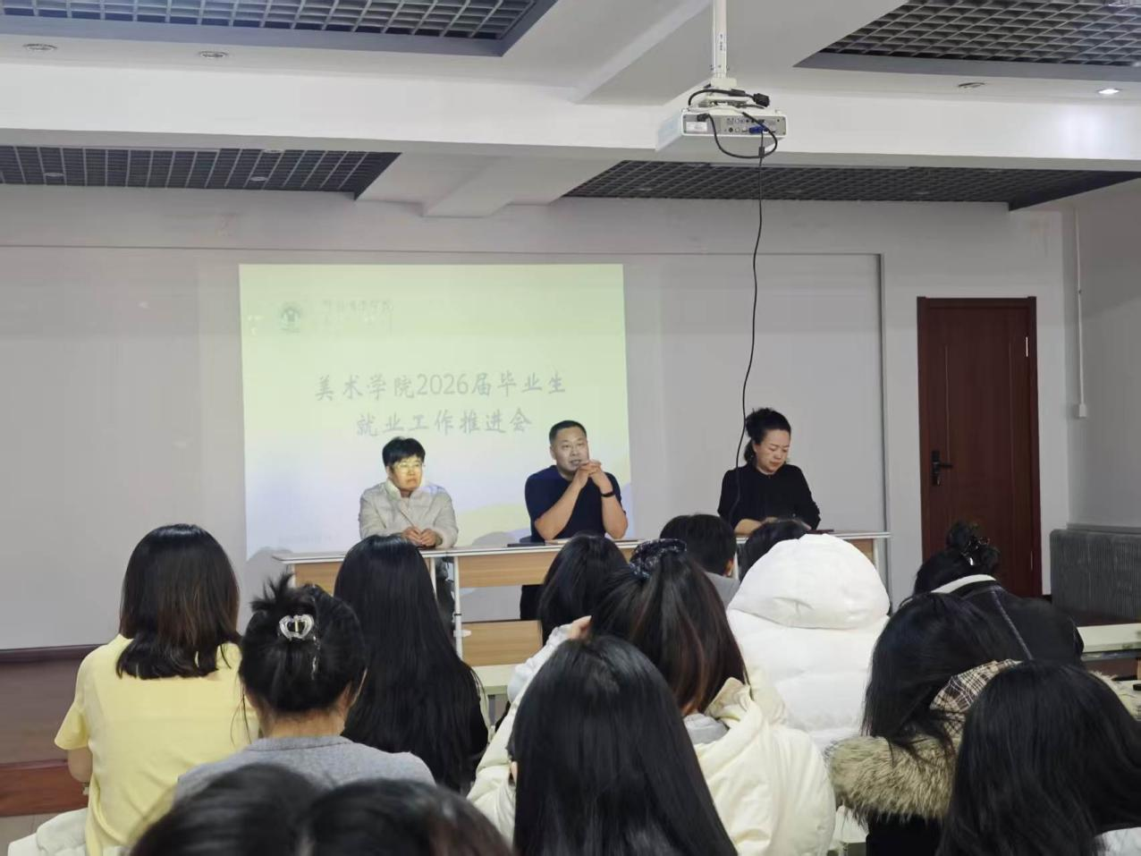 会上,毛永强结合当前国家宏观经济形势与艺术类行业发展趋势,深刻阐述了做好2026届毕业生就业工作的重要性和紧迫性。他提出了三点期望:一是要认清形势,转变观念,打破“慢就业”“懒就业”的思想桎梏,主动适应新业态、新模式的就业市场;二是要苦练内功,提升核心竞争力,将专业所学与社会需求紧密结合,以扎实的专业功底和创新的艺术思维赢得用人单位的青睐;三是要心怀家国,服务大局,鼓励同学们积极响应国家号召,关注西部计划、“三支一扶”以及基层美育教育岗位,将个人艺术梦想融入国家发展的宏伟蓝图。