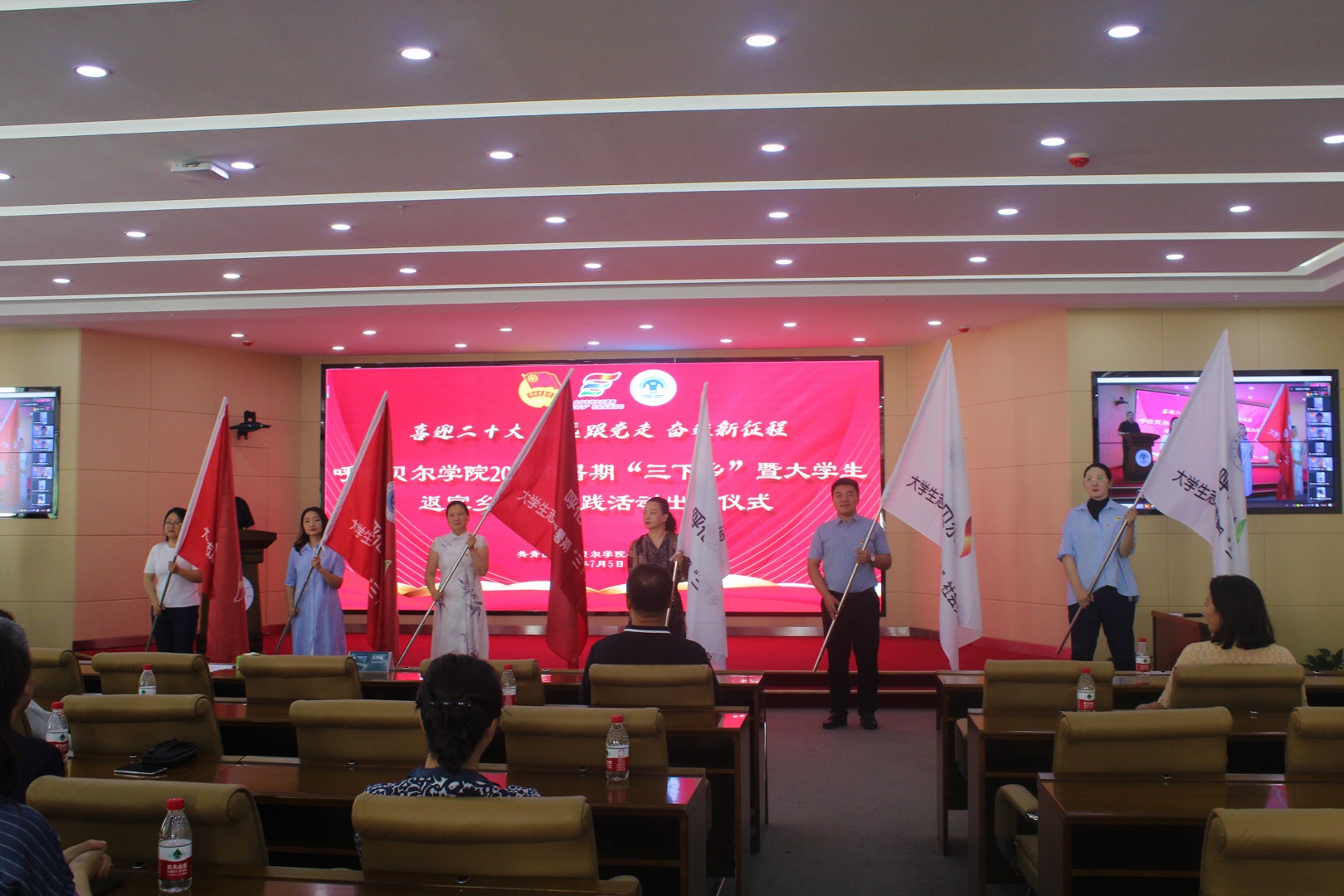 根据《关于开展2022年全国大中专学生志愿者暑期文化科技卫生“三下乡”社会实践的通知》文件精神,7月5日上午,bat365官网在崇文楼A201会议室举行了bat365中文官方网站2022年暑期“三下乡”暨大学生返家乡社会实践活动出征仪式。活动以线上线下相结合的形式开展,党委副书记张国栋,团委书记郝新君,各学院负责团学工作的主要领导、团总支书记及实践团代表共计147人参加仪式。