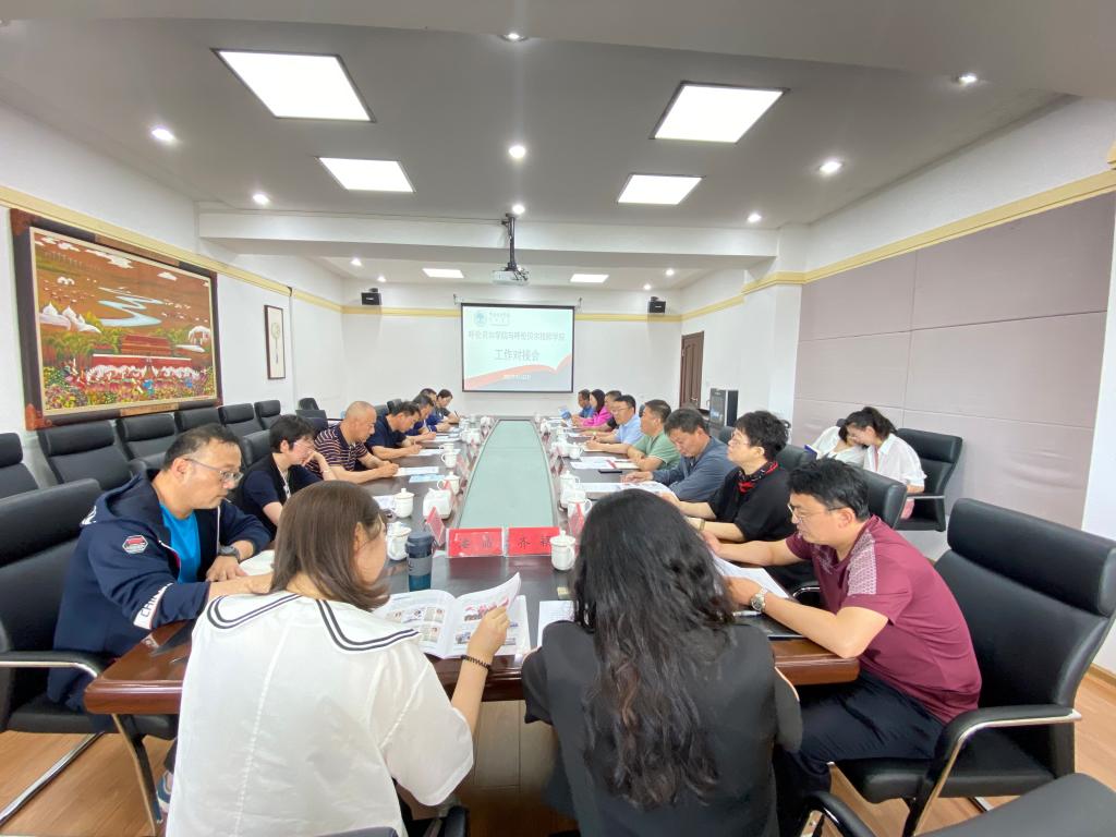 6月22日,呼伦贝尔技师学院党委书记贾德春、副院长杨岭、校企(校)合作办主任王东、教务处副主任王宝明一行4人到bat365官网洽谈合作事宜。党委委员、副校长孟祥宏,教务处,相关二级学院负责人参加了座谈交流。