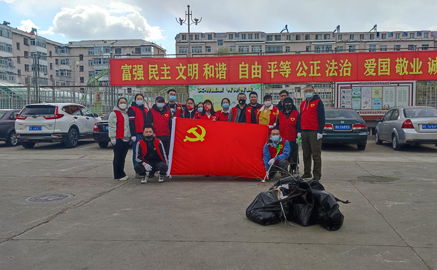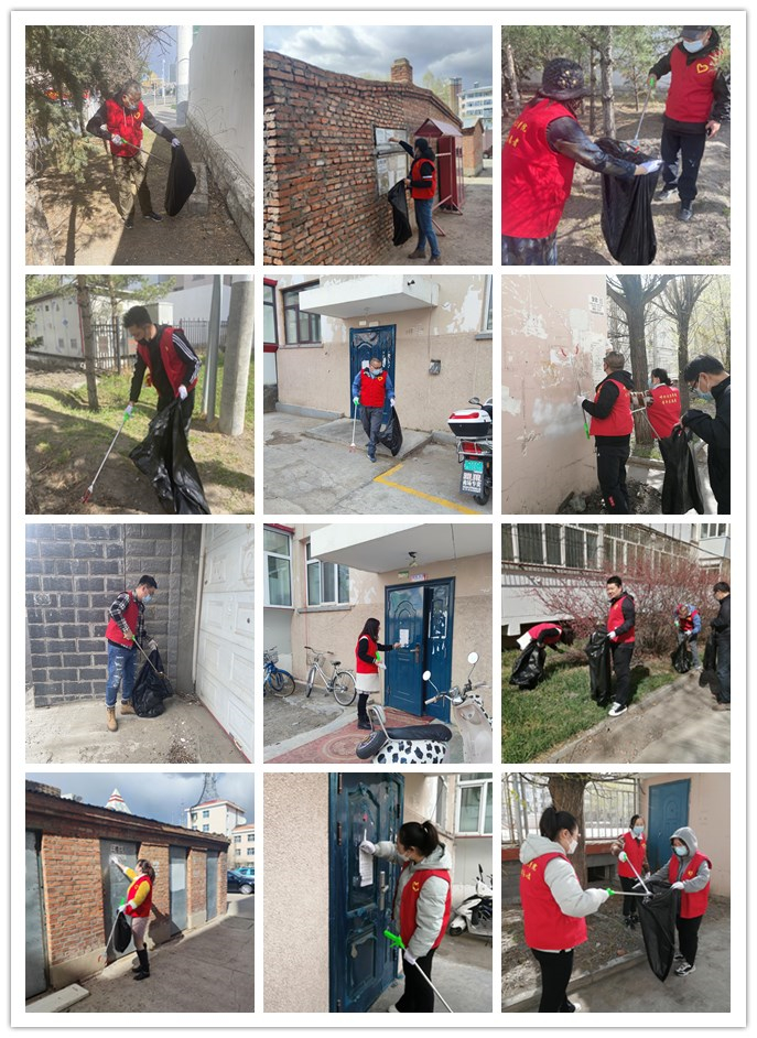 为扎实推进助力呼伦贝尔市创建文明城市工作,充分发挥党员的先锋模范作用,推深做实党员志愿服务,5月13日下午,学生工作处党支部深入学校包联社区——蓝盾社区,开展志愿服务。