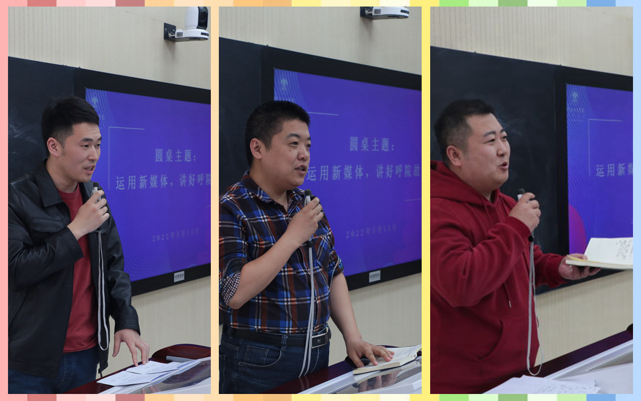 此次沙龙首先围绕“运用新媒体,讲好呼院故事”主题分为三组展开圆桌讨论,各单位新媒体负责人结合自身平台日常运营的经验及存在的问题依次发言,针对队伍建设、提高新媒体作品质量和讲好呼院故事等方面进行了充分互动,提出了卓有成效的方法与建议,三位组长就分组讨论情况与会进行交流发言。党委宣传部宣传网络科白玉红、崔壮、崔永明三位老师,针对各新媒体负责老师在圆桌讨论中集中存在的问题和平时新媒体运营的经验,分别从“新媒体巡查中存在的问题及解决方法”“微信公众平台内容制作技巧”“bat365中文官方网站官方抖音号的运营经验”三个方面进行了经验分享。