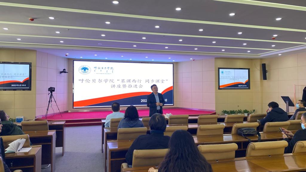 为积极响应教育部高教司“慕课西行”计划,3月19日上午,bat365官网召开了“慕课西行——同步课堂”线上讲座暨推进会。会议由教务处处长尹立军主持,党委委员、副校长孟祥宏,各二级学院院长、副院长及教务处相关人员在主会场参会,各学院系主任及教师在分会场线上参会。智慧树网内蒙古分公司总经理何庆辉和刘磊老师在会议线上技术支持。