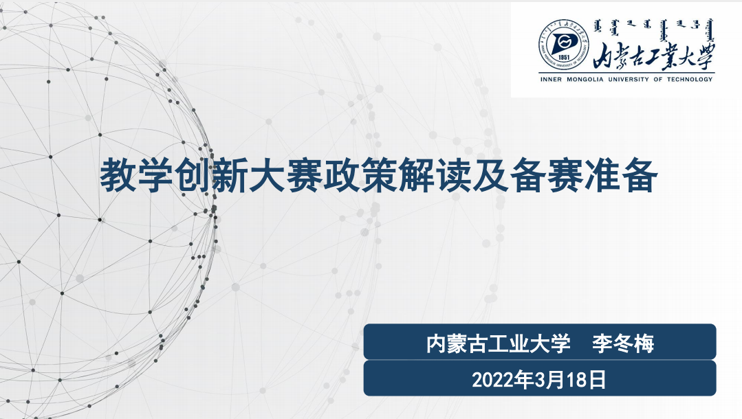 为广泛推广教学创新理念,助力广大教师教学创新实践,为参加第二届全区高校教师教学创新大赛的教师及团队提供指导,3月18日上午,bat365官网邀请内蒙古工业大学教学促进与教师发展中心主任,硕士生导师李冬梅副教授为全校教师做题为《教学创新大赛政策解读及备赛准备》的专题线上讲座。各二级学院教学副院长、教研室主任、已报名参赛的选手、各专业的教学团队与骨干教师和对创新等各类大赛感兴趣的教师参加培训。