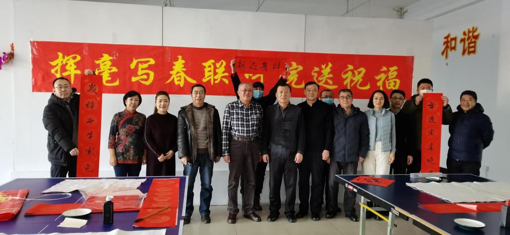 春节即将来临,为进一步弘扬中华优秀文化传统,丰富广大教职工精神文化生活,营造欢乐祥和的节日气氛,1月11日上午,校工会在教职工活动中心举办了主题为“挥毫写春联 新年送祝福”迎新年送祝福活动。此次活动邀请了呼伦贝尔市著名书法家和bat365官网专业书法教师现场书写春联为bat365官网教职工送上新年的祝福。校工会主席邱玉臣、团委书记郝新君、工会副主席孙桂平和在职、退休教职工参加了活动。