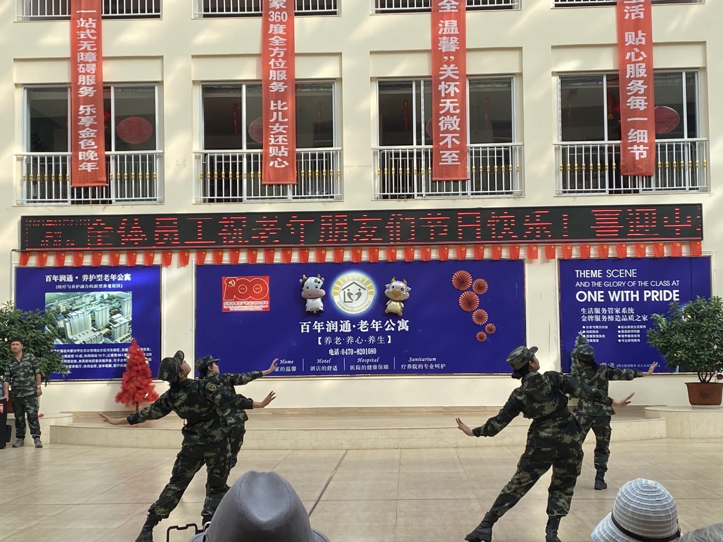 为弘扬中华民族尊老、敬老、爱老的传统美德,9月21日中秋节,学生工作处民兵应急营的同学们来到“百年润通”老年公寓,开展中秋节慰问演出活动,为这里的老人送去一份爱心和中秋的祝福。