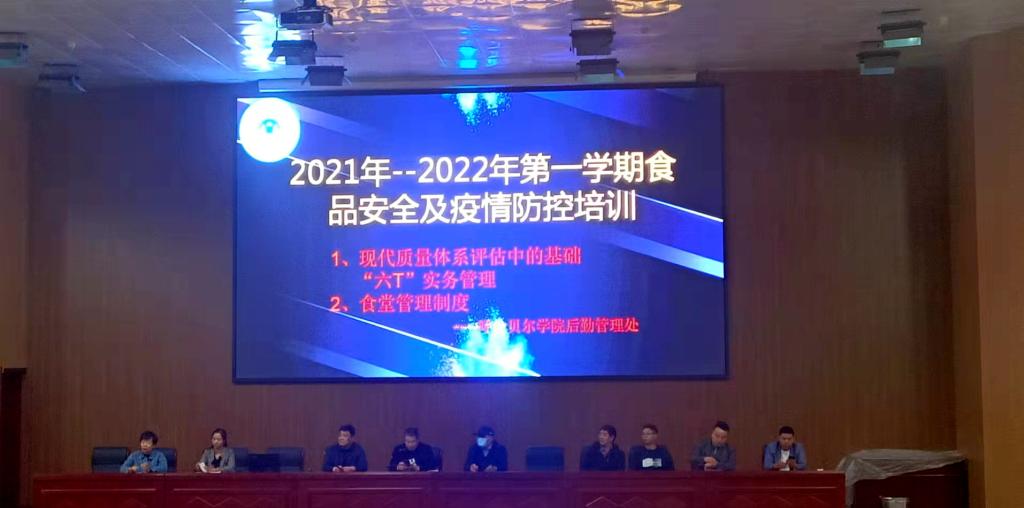 为贯彻落实内蒙古自治区及bat365官网2021年秋季开学安全工作的会议精神,切实加强学校食堂食品安全监管工作,维护师生的饮食安全,9月10日上午,后勤管理处饮食服务中心组织全体工作人员及三所食堂全体管理人员、从业人员350余人,在图书馆四楼报告厅召开了2021年—2022年第一学期食品安全及疫情防控培训会。